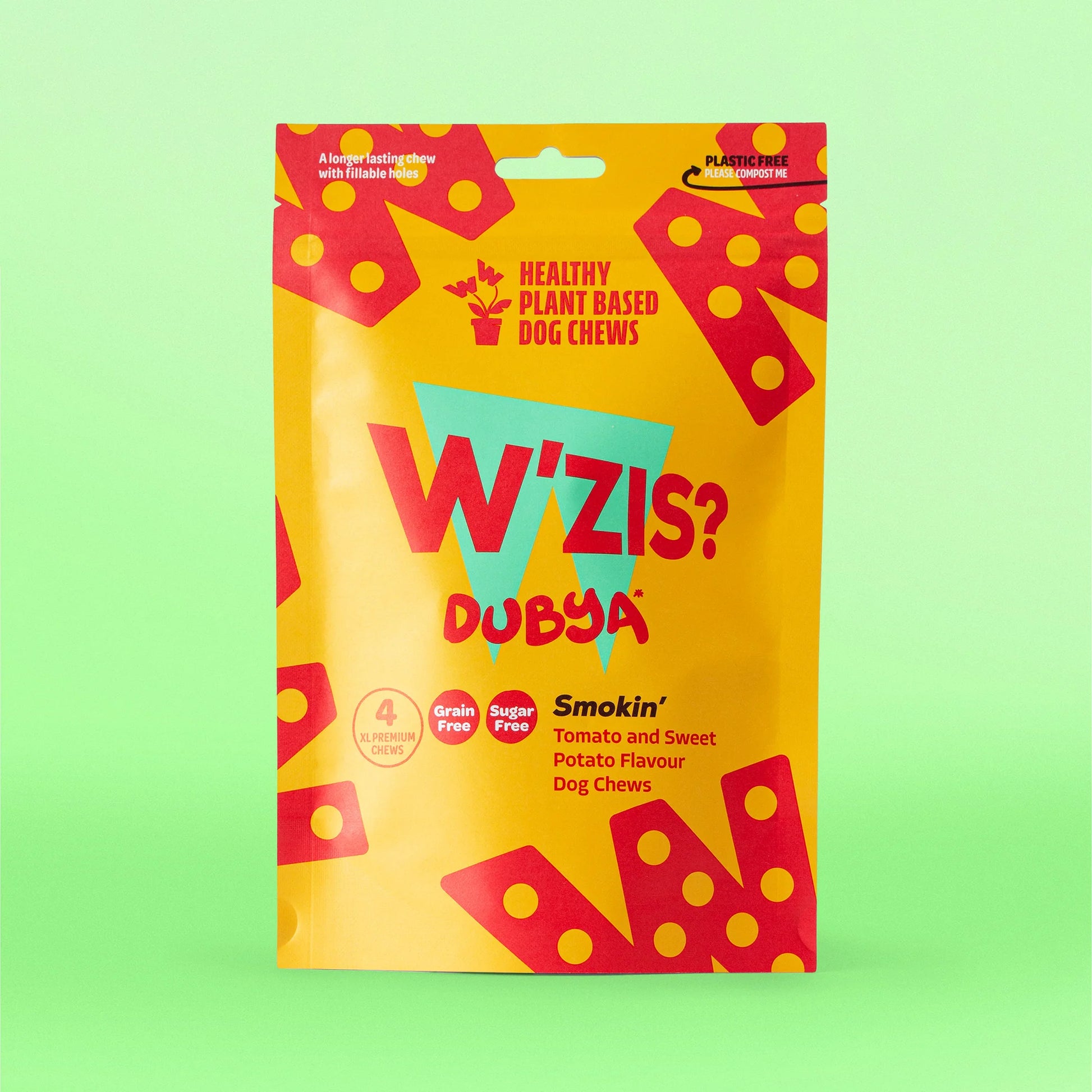 W’ZIS Smoky Dubya – це XL веганські жуйки для собак у яскравій формі «W». Вони виготовлені з корисних овочів, не містять м’яса та ідеально підходять для довгого гризіння. Чудовий спосіб зайняти собаку та підтримати його задоволення від перекусу.