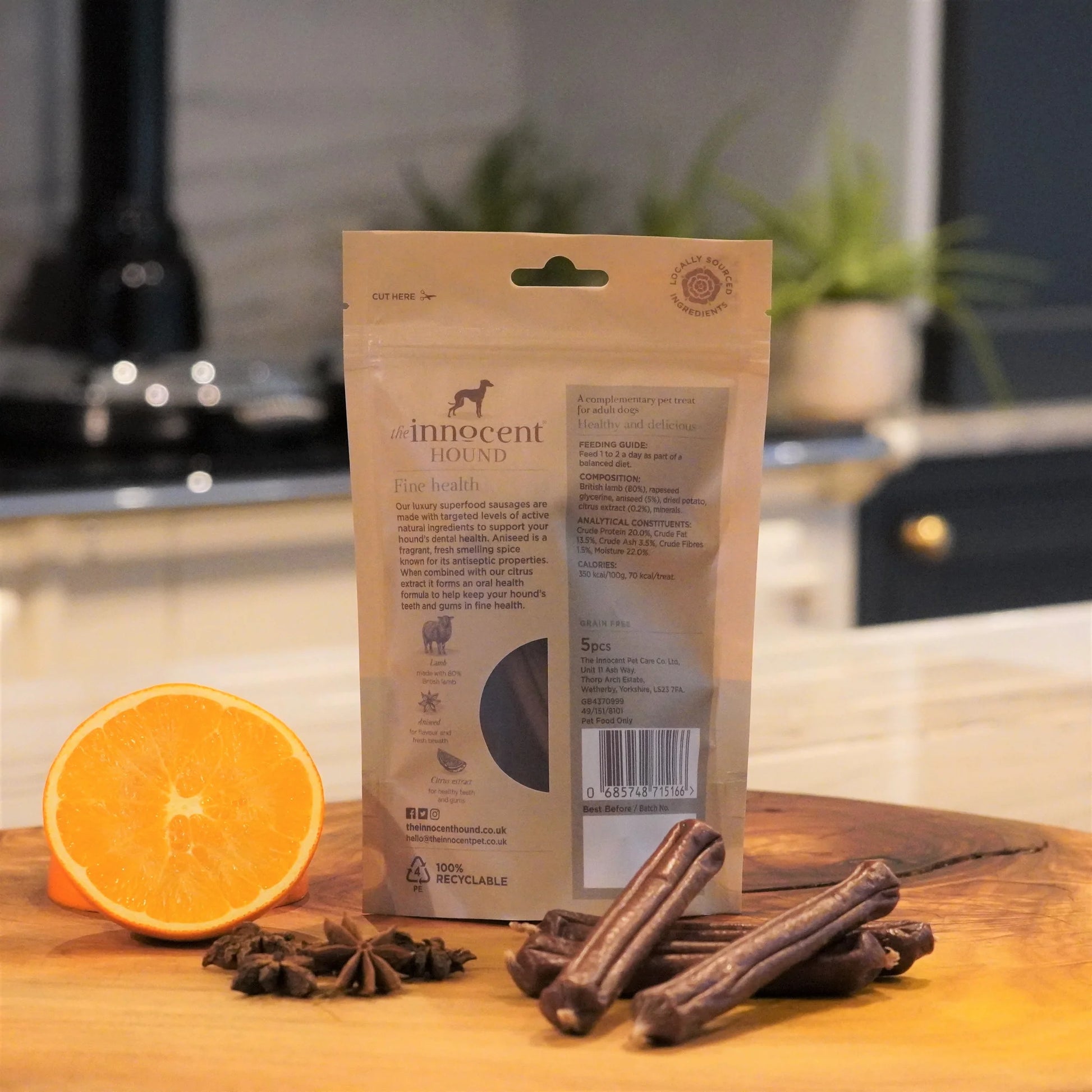 Ці розкішні ковбаски виготовлені з 80% свіжої британської баранини та містять освіжаючий подих аніс разом з екстрактом цитрусових – потужним антибактеріальним та протигрибковим засобом, який допомагає запобігти утворенню зубного нальоту та зубного каменю.