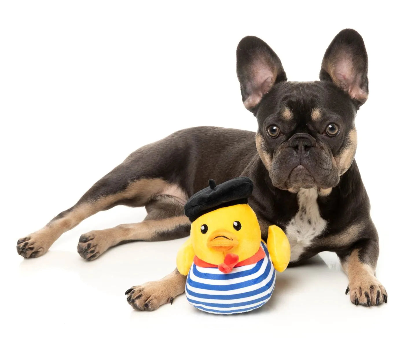 Ця хвацька французька качка — не просто іграшка. Тімоті Чалаквак, одягнений у стильний берет і з елегантними вусами, принесе нотку паризької елегантності в ігри вашого пухнастого друга.